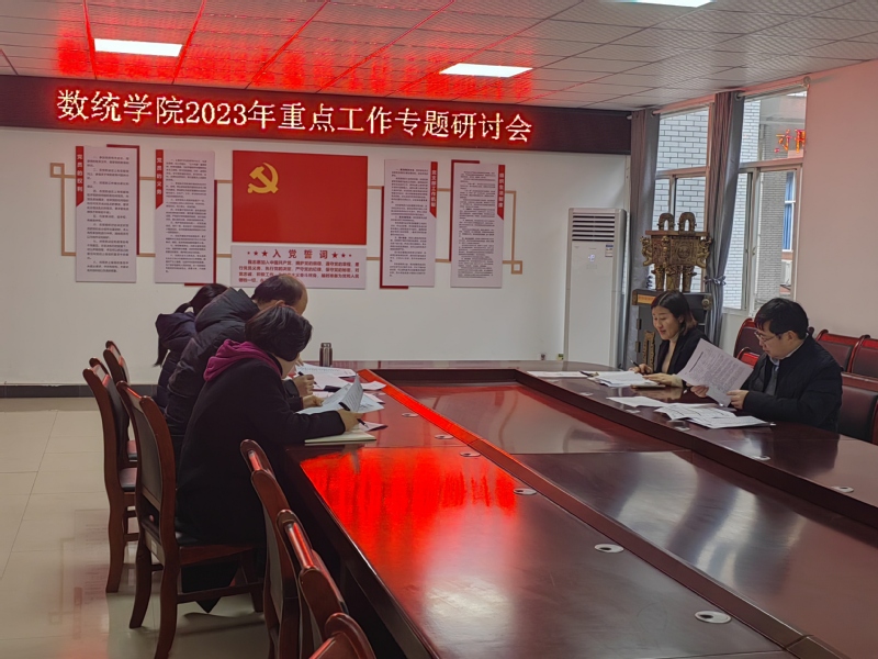 为推进2023年各项工作高质量开展,数统学院领导班子成员于2月22日下午在216会议室召开2023年学院重点工作专题研讨会。