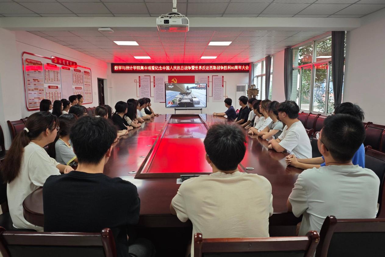 9月3日上午,纪念中国人民抗日战争暨世界反法西斯战争胜利80周年大会在北京天安门广场隆重举行。中共中央总书记、国家主席、中央军委主席习近平出席大会并发表重要讲话,随后检阅部队。数学与统计学院积极响应号召,在钩深楼附楼216会议室设立集中观看点,我院部分党员和学生代表共同收看大会实况直播,重温历史、缅怀先烈,弘扬爱国主义精神。
