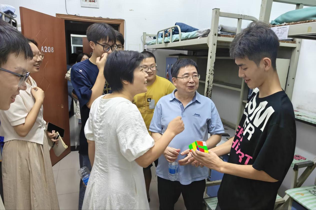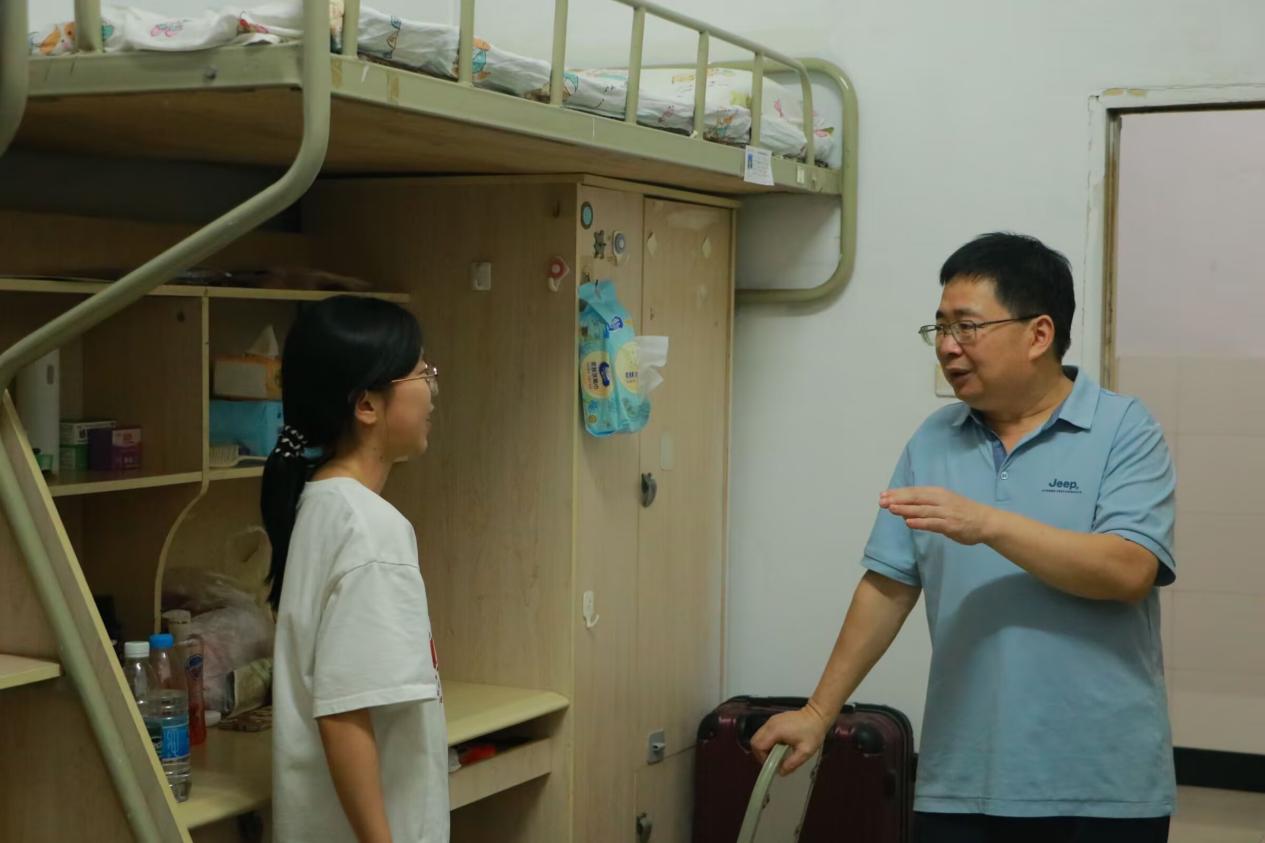9月10日晚,学院领导班子成员、学工办主任和2025级新生辅导员等在学生社区南苑四舍、南苑七舍进行2025年新生寝室走访及安全大排查。