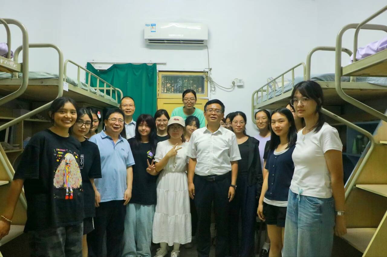 9月10日晚,学校党委常委、副校长李柳柏带队,教务处副处长胡俊飞随行,在学院领导班子的陪同下,深入数学与统计学院2025级新生宿舍,为初入校园的学子送去关怀与问候。