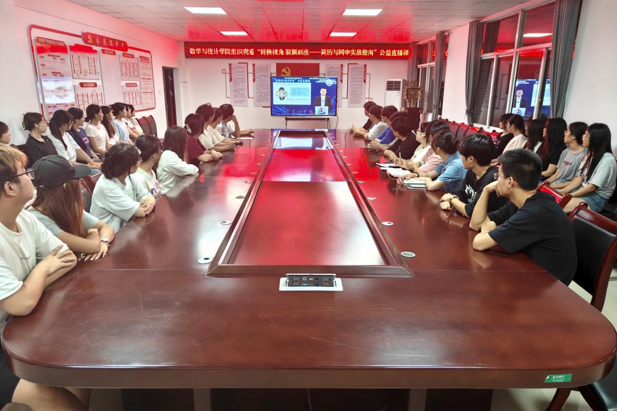 9月28日晚,数学与统计学院在钩深楼附楼216组织观看“转换视角脱颖而出——简历与网申实战指南”公益直播课,我院部分同学参加。