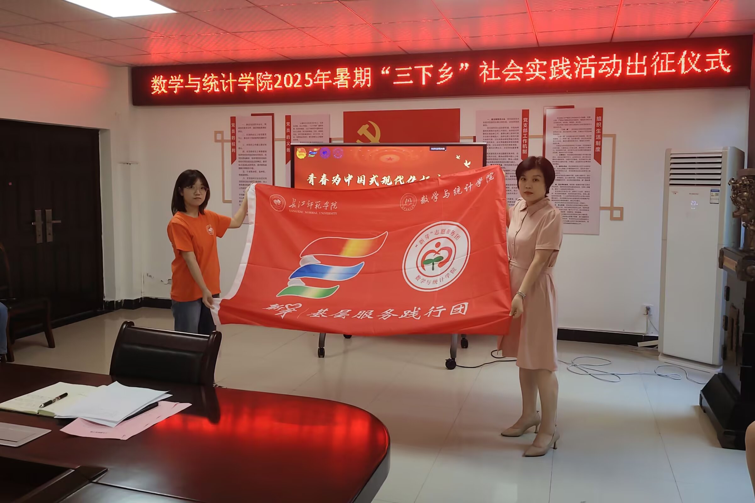 7月4日下午,数学与统计学院在钩深楼附楼216会议室开展2025年暑期“三下乡”社会实践活动出征仪式暨安全教育培训会,我院团委书记姜丽担任主讲人,我院2025年“三下乡”社会实践活动志愿者全体参加。