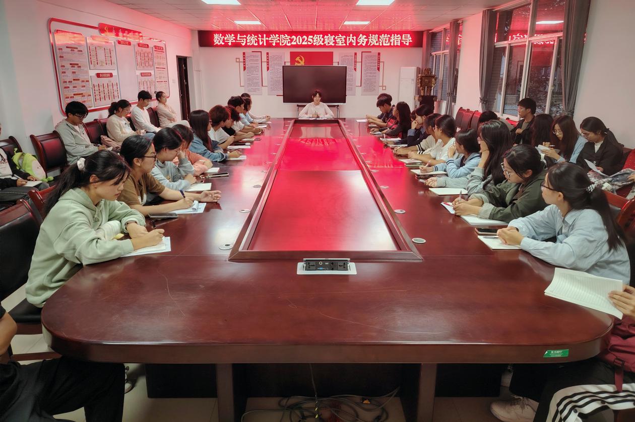 10月15日下午,数学与统计学院在钩深楼附楼216会议室开展2025级寝室内务规范指导,我院学生社区管理部主要负责人担任主讲人,我院全体2025级非混寝寝室长参加。