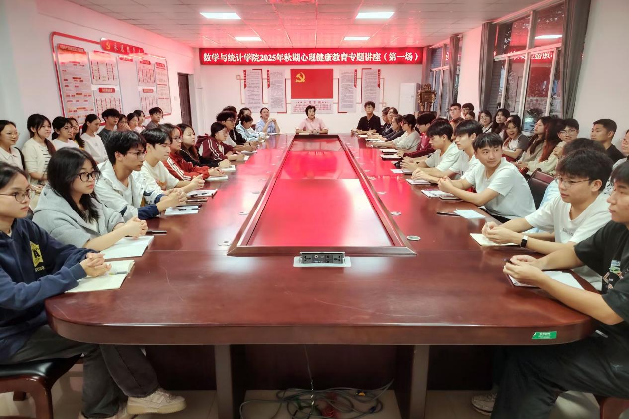 10月16日晚,数学与统计学院在钩深楼附楼216会议室开展2025年秋期心理健康教育主题讲座(第一场),我院学工办主任担任主讲人,我院全体学生干部参加。