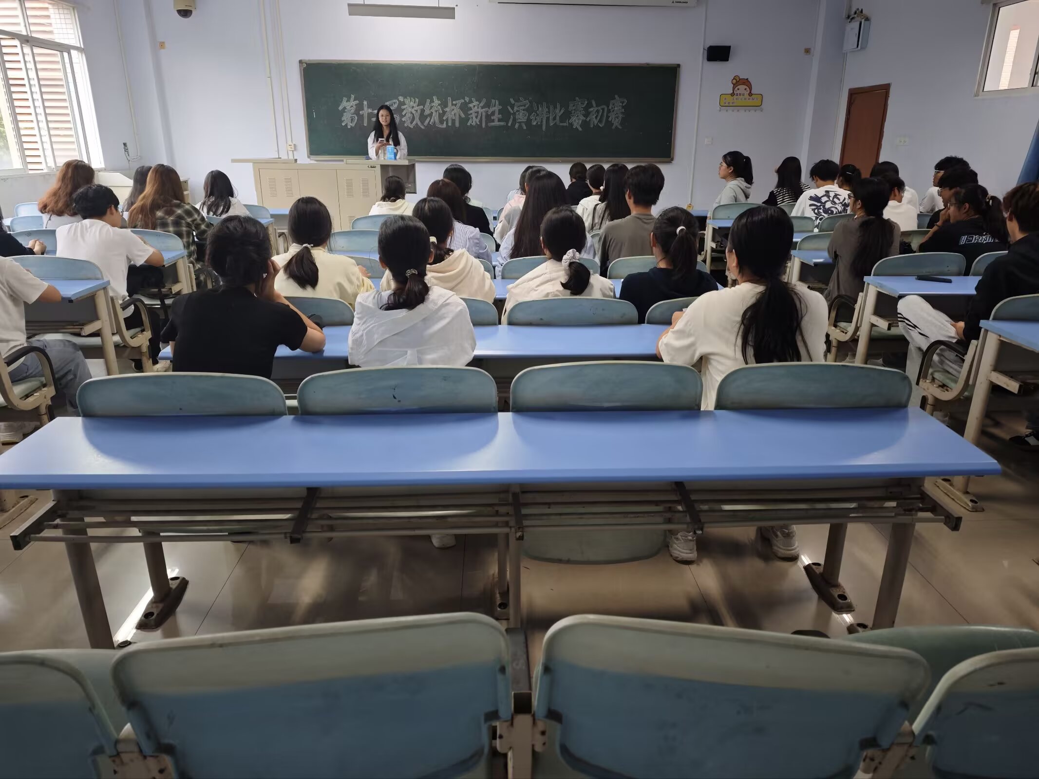 10月17日下午,数学与统计学院2025级各班分别在正心楼202、203、204、509、510开展第十二届“数统杯”新生演讲比赛初赛。我院2025级全体学生参加。