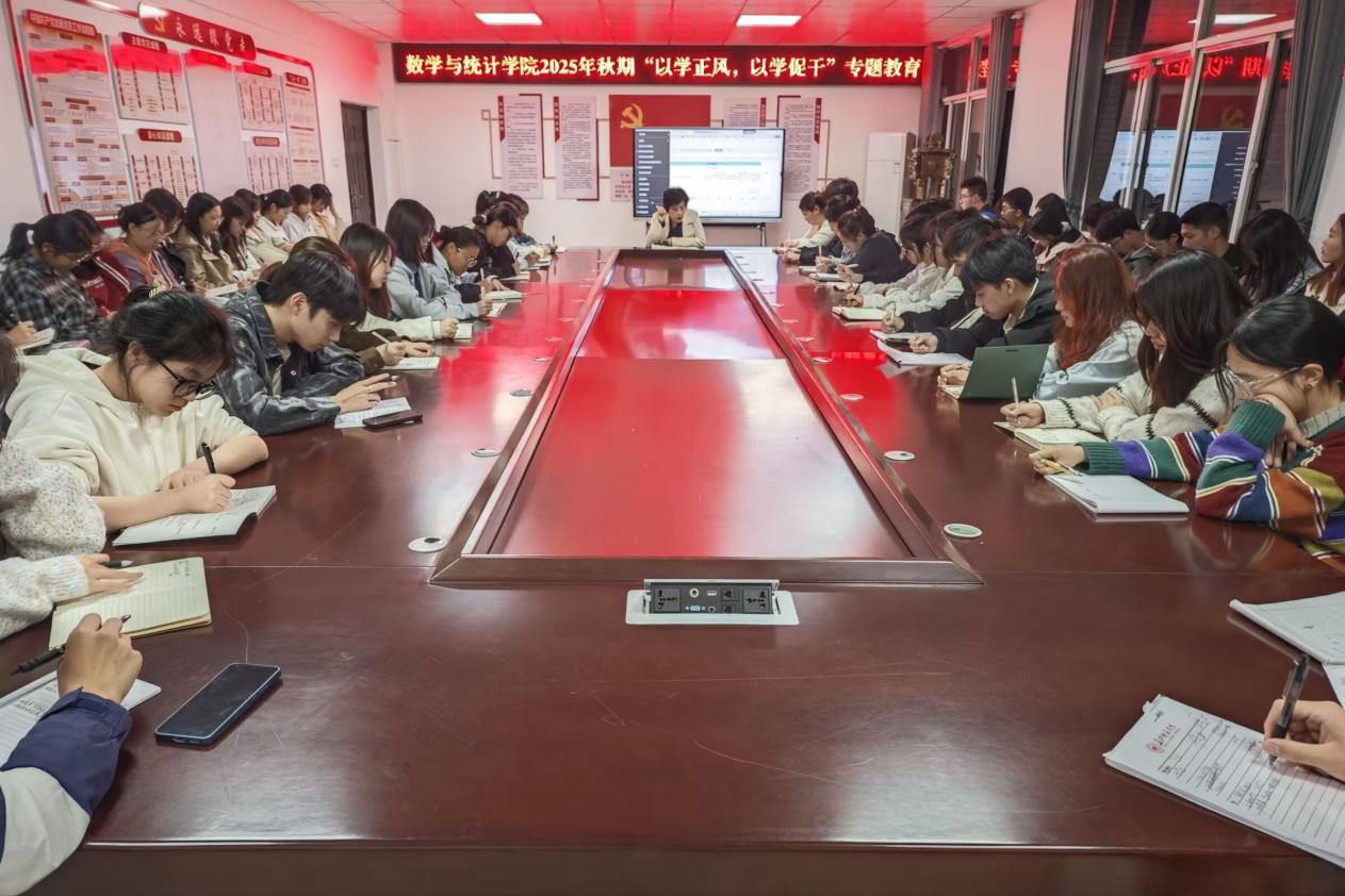10月23日晚,数学与统计学院在钩深楼附楼216会议室开展2025年秋期“以正学风,以学促干”主题教育。我院学工办主任姜丽担任主讲人,我院全体学生干部参加。