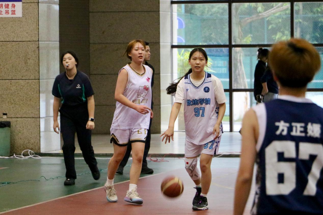 比赛伊始,双方迅速进入状态,攻防转换节奏极快。我院队员凭借默契的配合和精准的外线投篮,率先建立起领先优势。然而对手多次发起猛烈反扑,比分一度陷入胶着。面对压力,我院队员沉着冷静,主教练及时调整战术,队员们坚决执行。展现出了顽强的防守意志和稳定的心理素质,通过积极的拼抢和流畅的团队进攻,抓稳比分,牢牢掌控住比赛节奏,赢得场边观众阵阵喝彩。