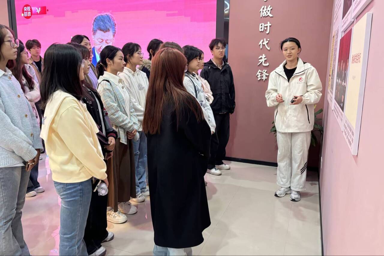 10月24日下午,数学与统计学院在至静南楼一楼大厅开展“传承红色基因,争做时代新人”——数学与统计学院新生入学教育之参观英模教育馆活动。马克思学院的刘滢颖、毕文婧、廖凡、刘乔担任讲解员,我院2025级全体同学参加。