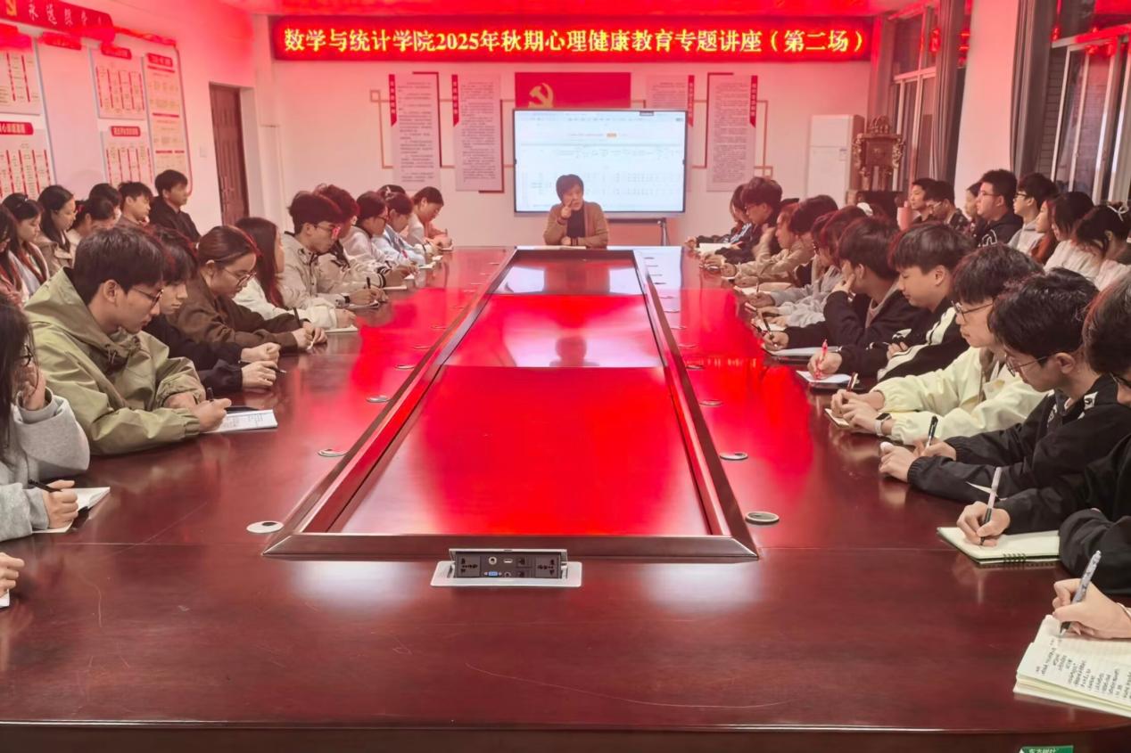 10月30日下午,数学与统计学院在钩深楼216会议室开展2025年秋期心理健康教育专题讲座,我院学工办主任担任主讲人,我院全体学生干部参加。