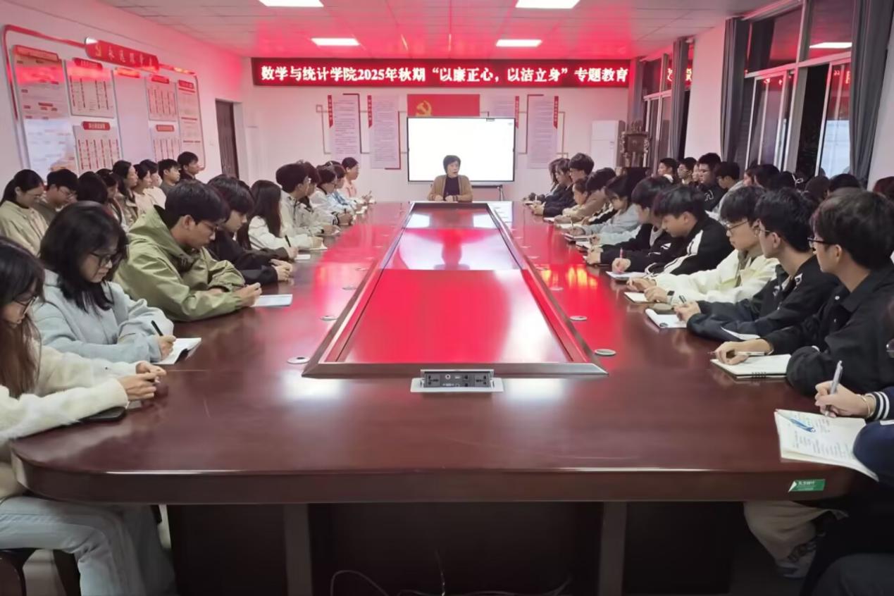 10月30日晚,数学与统计学院在钩深楼附楼216会议室开展2025年秋期“以廉正心,以洁立身”专题教育。我院学工办主任担任主讲人,我院全体干部参加。