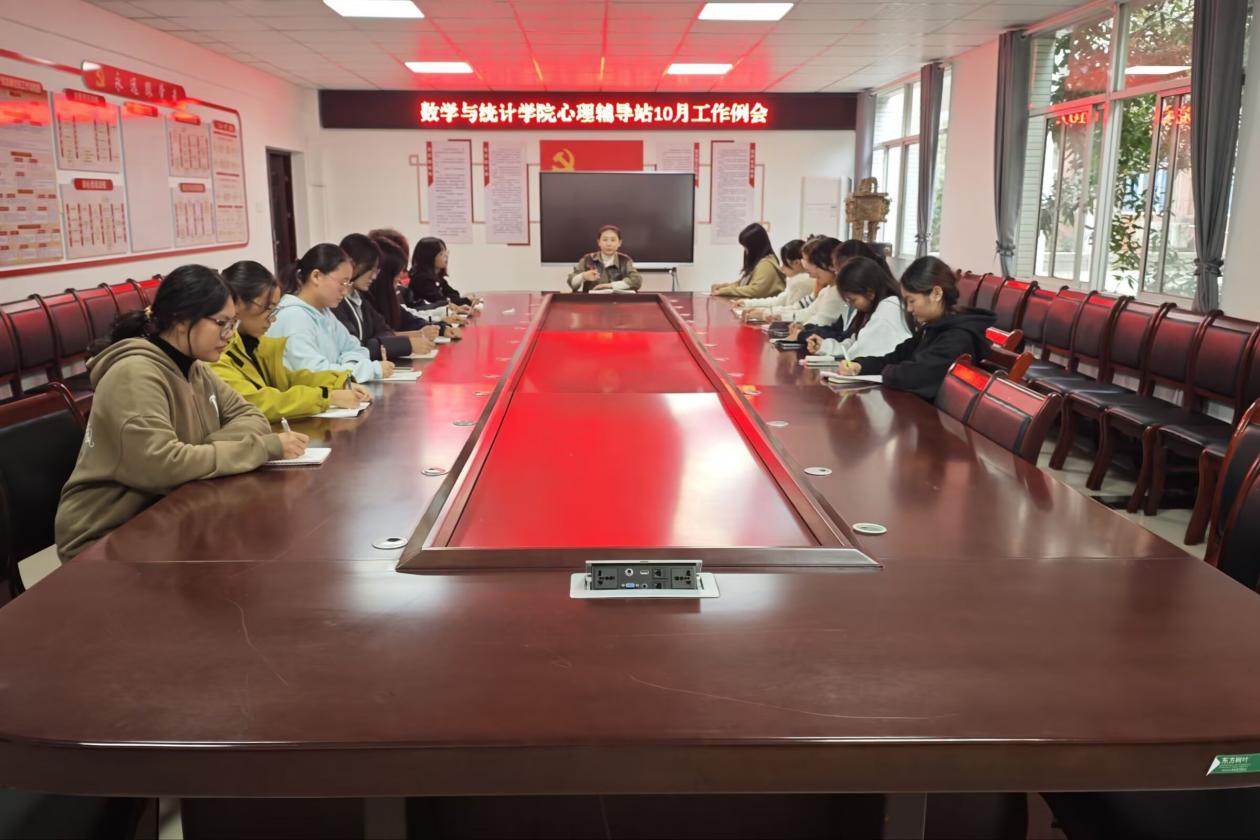 10月31日中午,数学与统计学院在钩深楼附楼216会议室开展心理辅导站10月工作例会,我院心理专员担任主讲人,各年级心理委员及心理发展部全体成员参加。