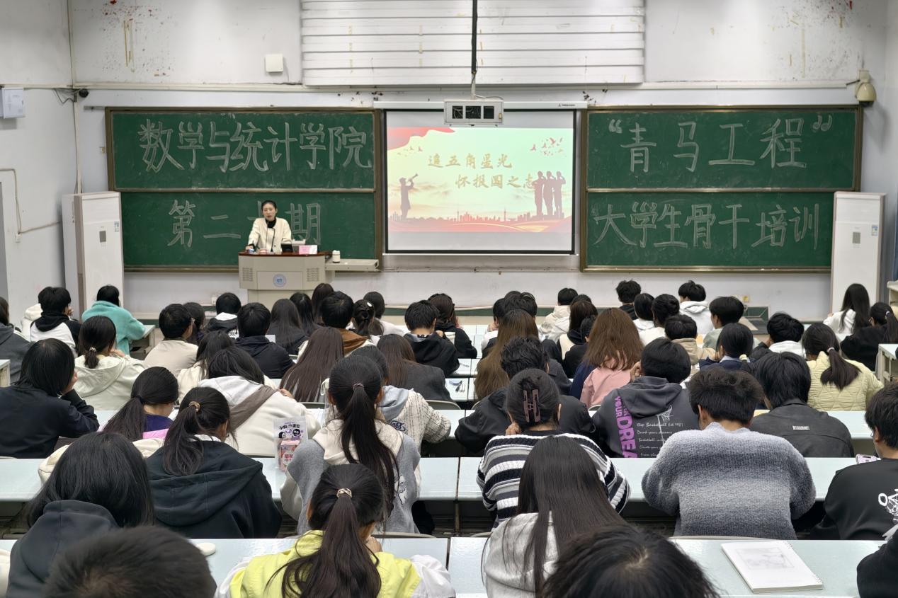 11月6日晚,数学与统计学院在正心楼02阶梯教室开展“青马工程”第二十期大学生骨干培训会。我院2023级辅导员刘磊担任主讲人,2025级全体青马学员参加。