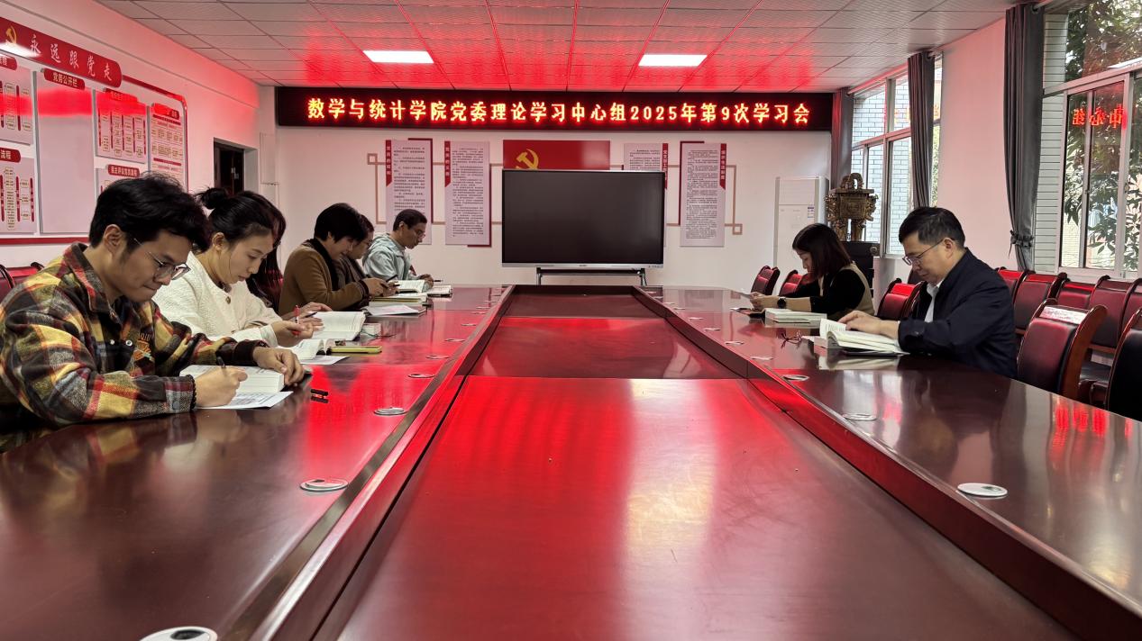 10月30日下午,数学与统计学院党委举行理论学习中心组2025年第9次学习会。学院党委委员、科以上干部和支部书记参加,学院党委书记主持会议。