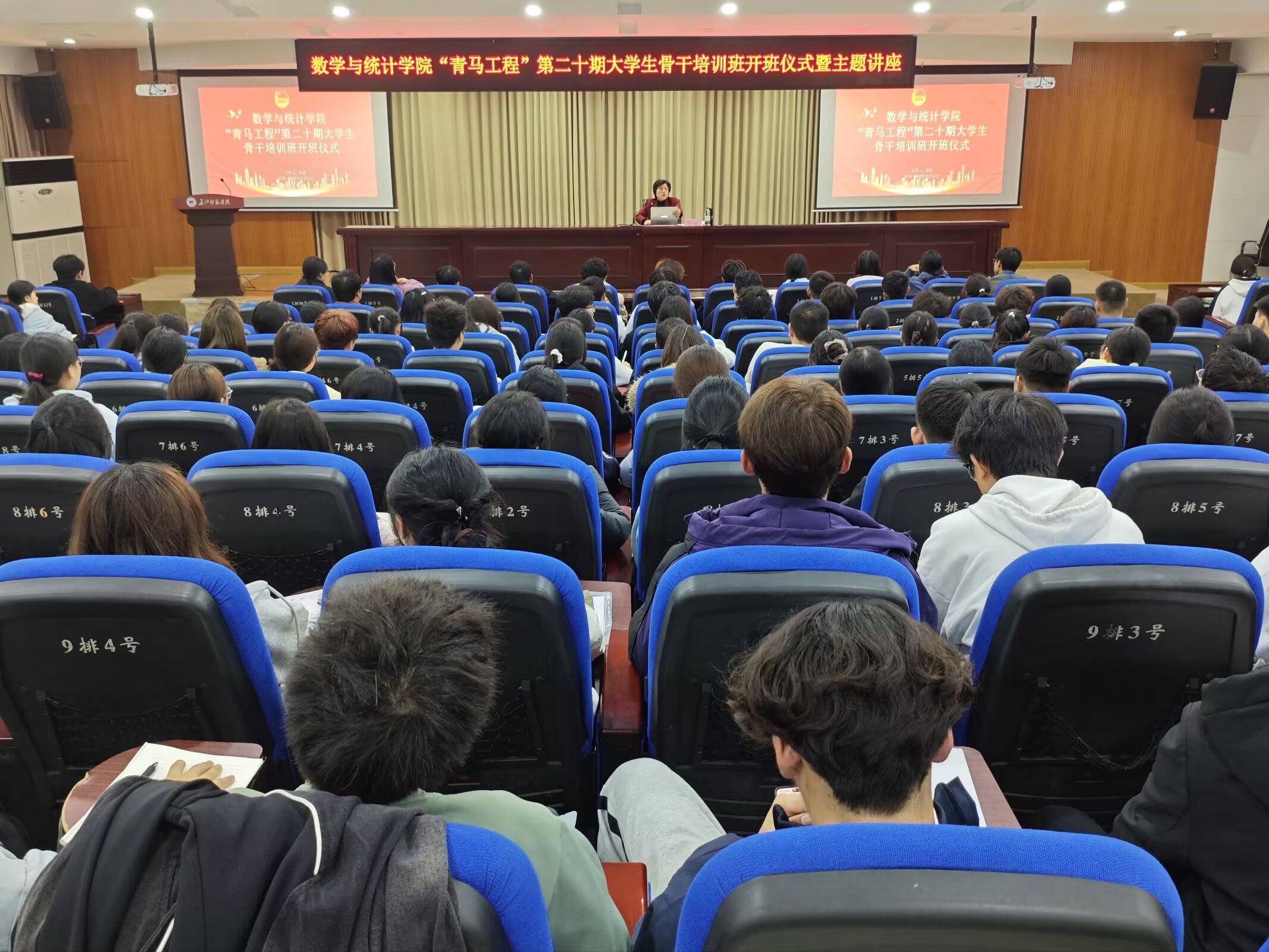 11月11日晚,数学与统计学院在鉴湖学术报告厅开展第二十期“青马工程”大学生骨干培训班开班仪式暨主题讲座,我院团委书记姜丽担任主讲人,2025级全体学员参加。