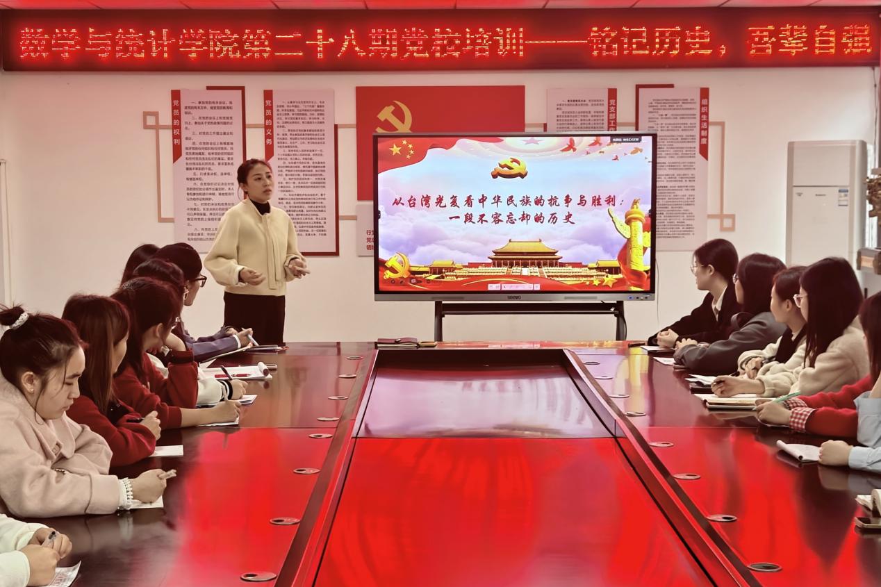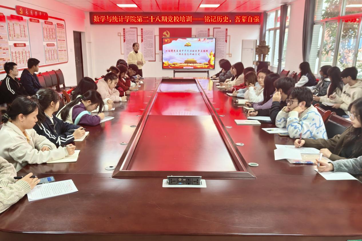 11月13日下午,数学与统计学院在钩深楼附楼216会议室开展我院第二十八期党校培训——铭记历史,吾辈自强。我院23级辅导员担任主讲人,预备党员及入党积极分子参与。