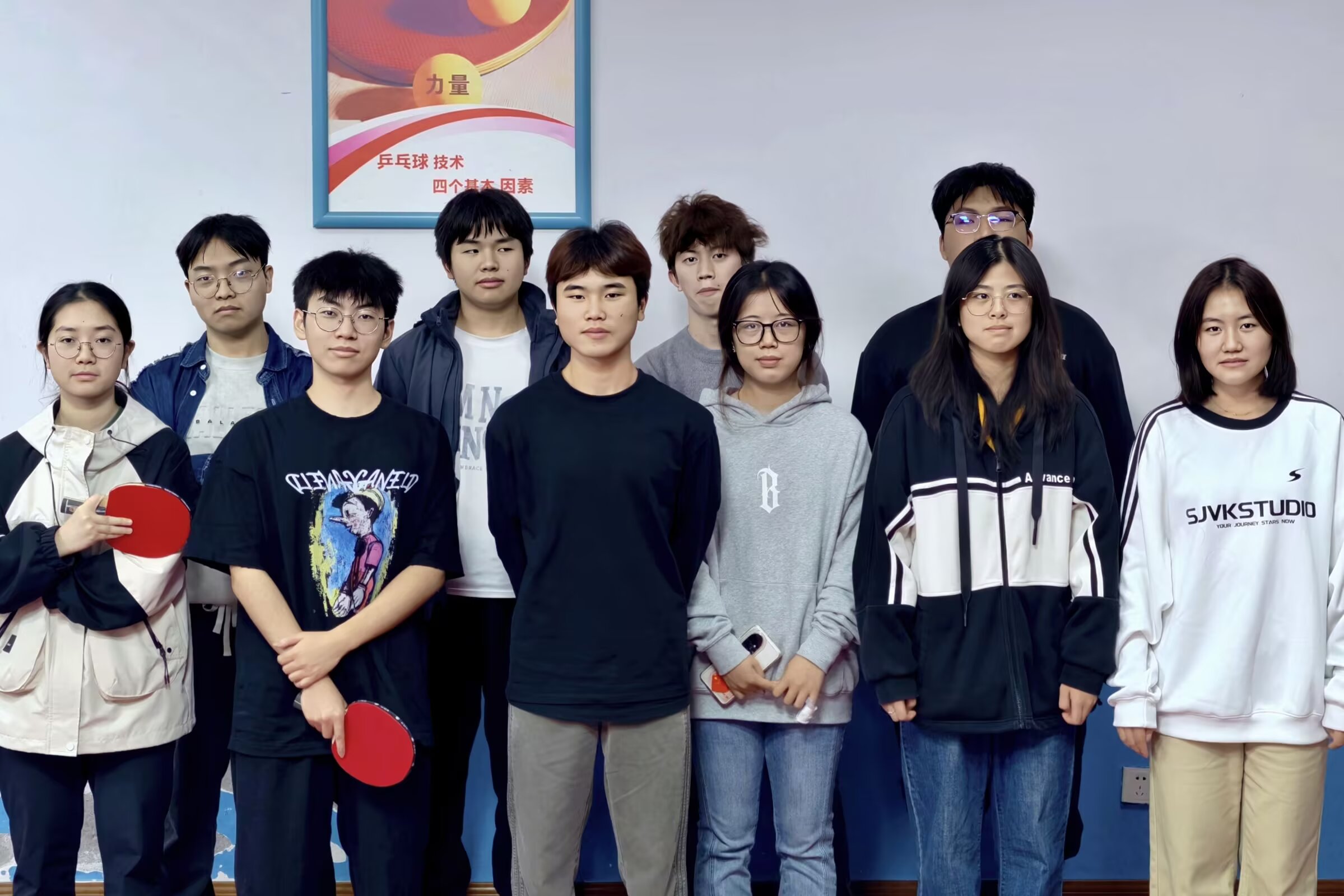 本次赛事汇聚了来自不同学院的众多乒乓球爱好者,项目涵盖男子单打、女子单打及混合双打。赛场上,我院选手展现出娴熟的球技,发球弧线刁钻,拉球节奏多变,凭借一记“擦边快攻”与连续摆短的战术组合,成功撕开对手防线,场边观众的喝彩声此起彼伏。双方选手攻防交替,精彩回合频现,既体现了竞技的紧张感,也流露着跨院交流的友好氛围。赛后,我院参赛球员合影留念。