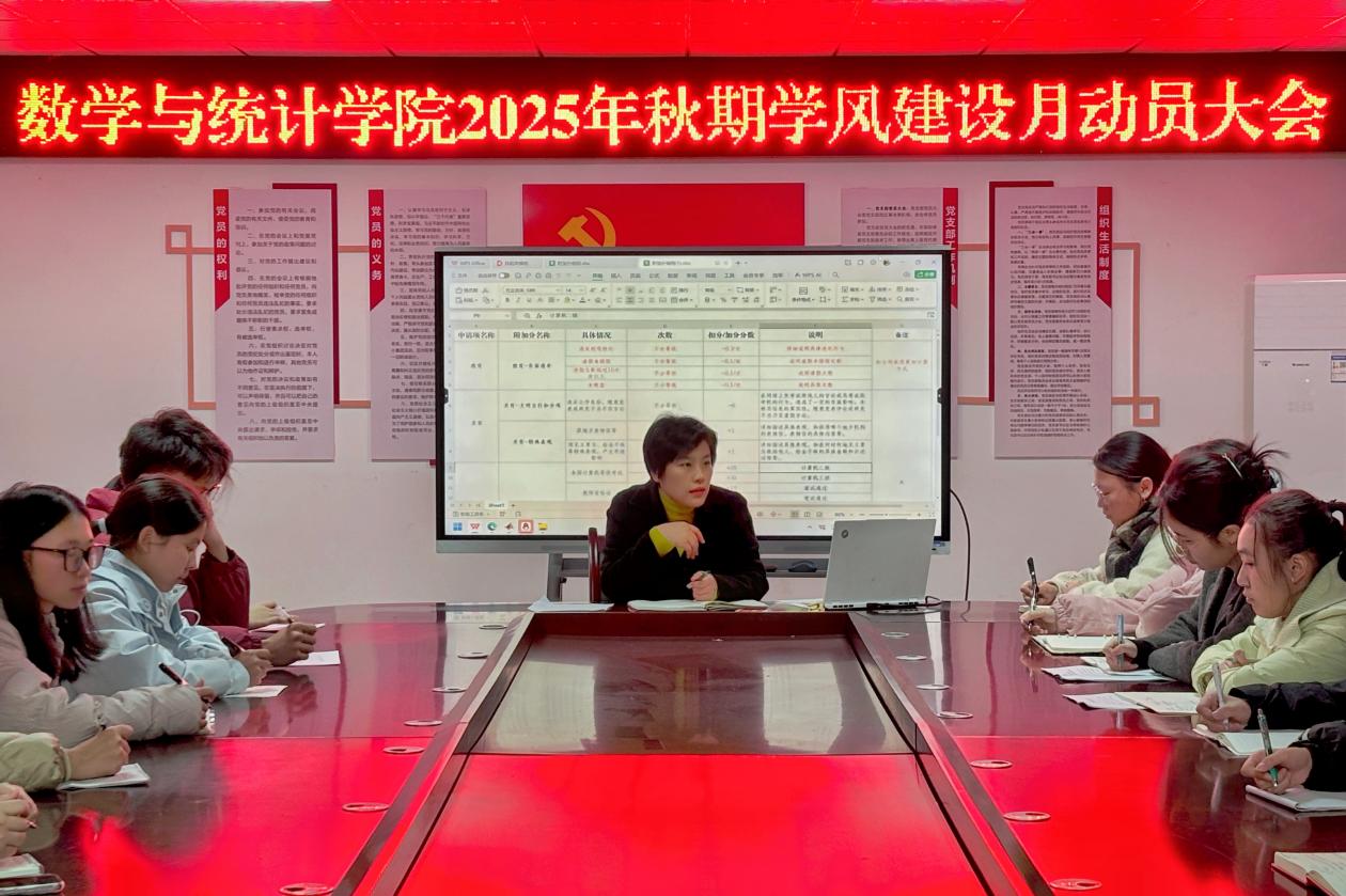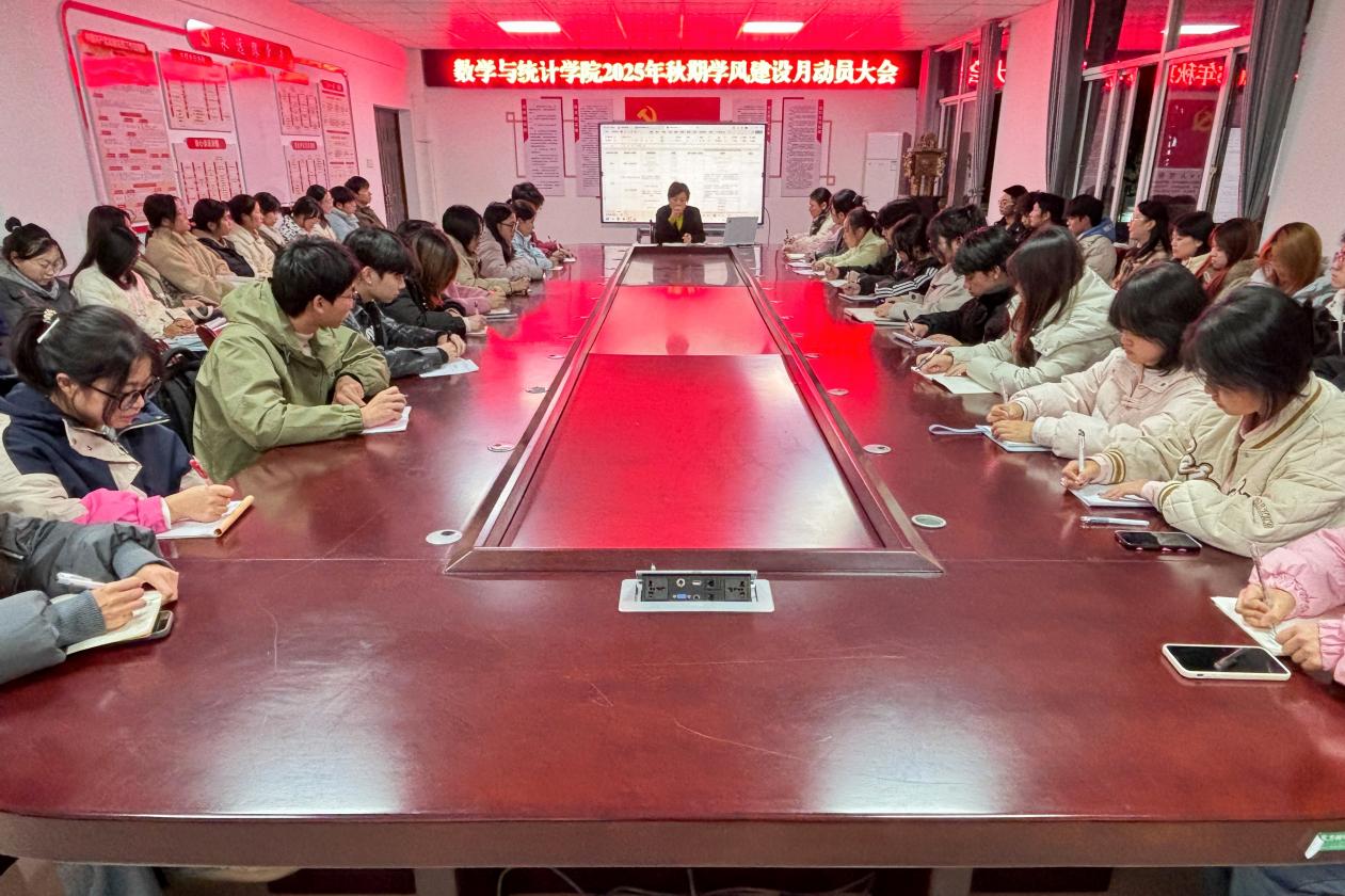 11月20日下午,数学与统计学院于钩深楼附楼216会议室开展2025年秋期学风建设月动员大会,我院学工办主任姜丽担任主讲人,全体学生干部参与。