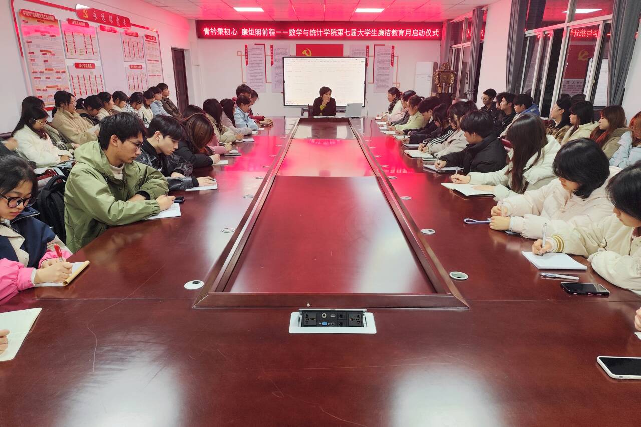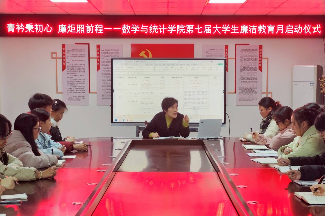 11月13日晚,数学与统计学院在钩深楼附楼216会议室开展青衿秉初心,廉炬照前程——数学与统计学院第七届大学生廉洁教育月启动仪式,我院学工办主任担任主讲人,我院全体学生干部参加。