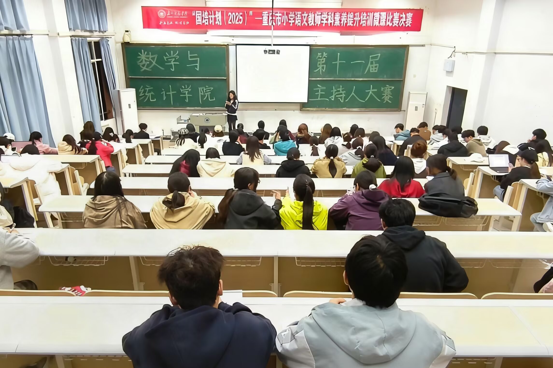 11月13日晚上,数学与统计学院在诚意楼02阶梯教室开展了第十一届主持人大赛决赛。传媒学院王欣洁、杨斯裕及我院学生会主席王友巧、党建办公室主任涂诗念担任评委,我院2024级、2025级部分同学参加。