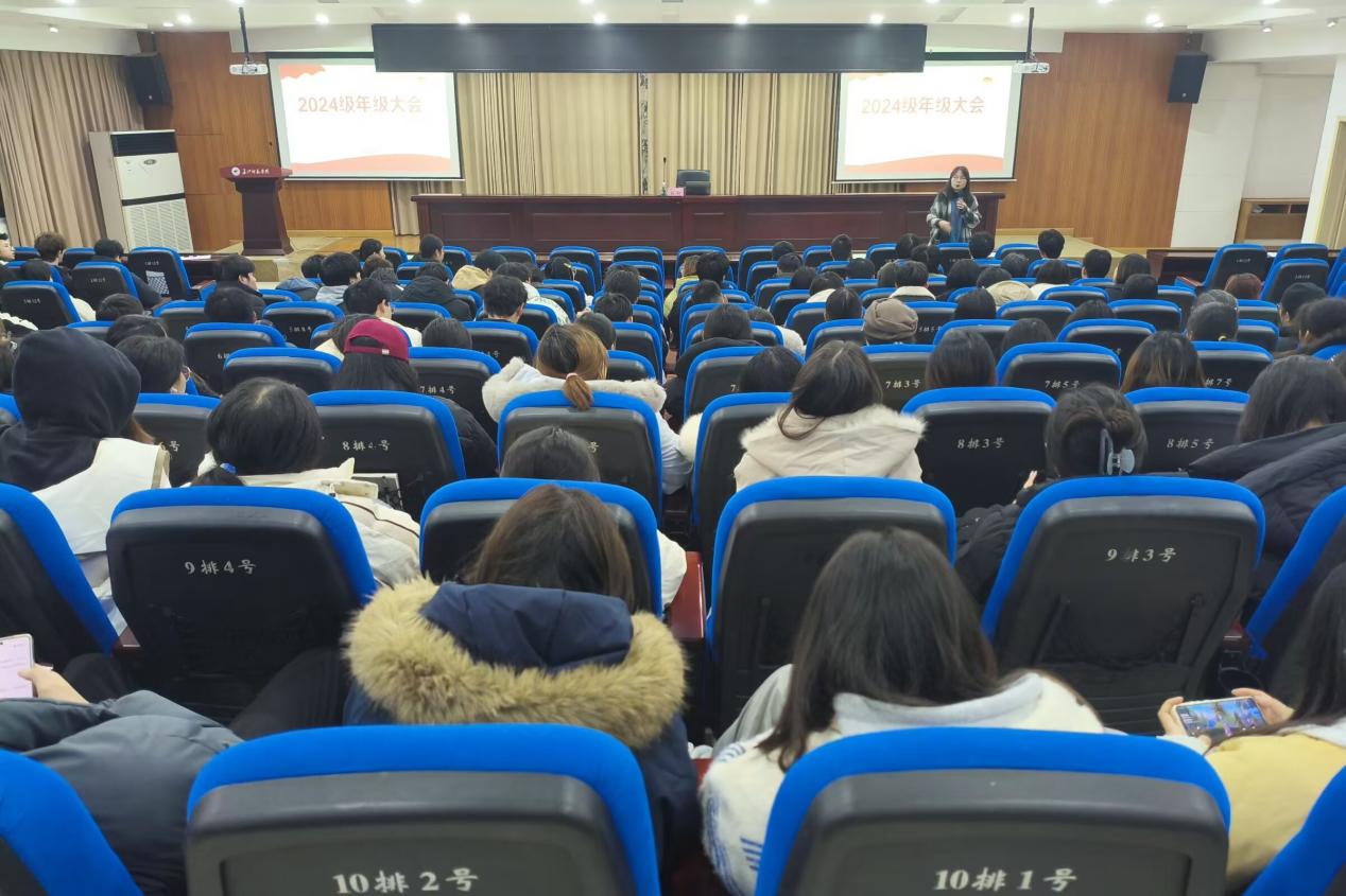 12月9日晚上,数学与统计学院于鉴湖学术报告厅开展2024级年级大会。我院2024级辅导员杨阳担任主讲人,2024级全体学生参加。