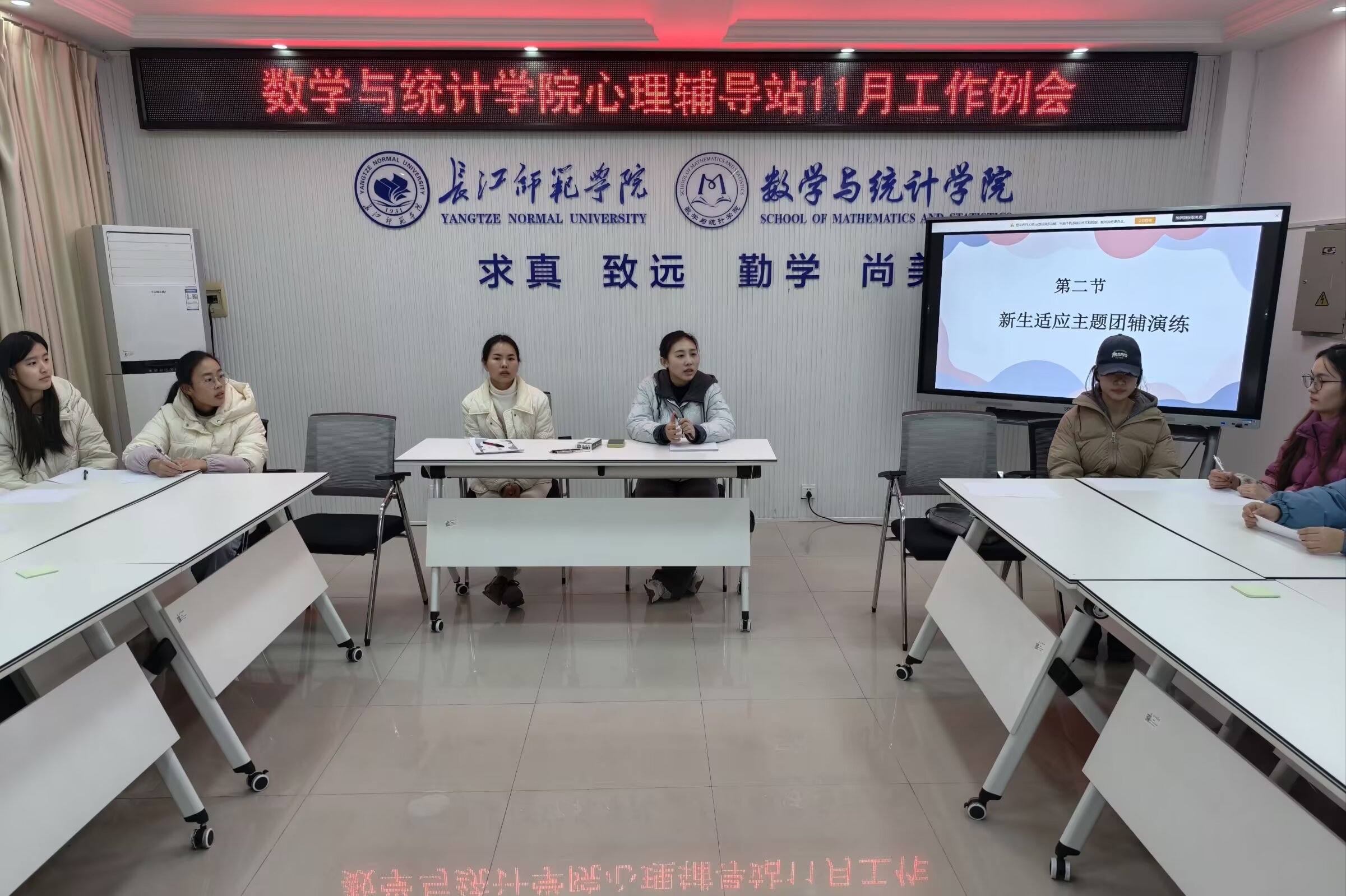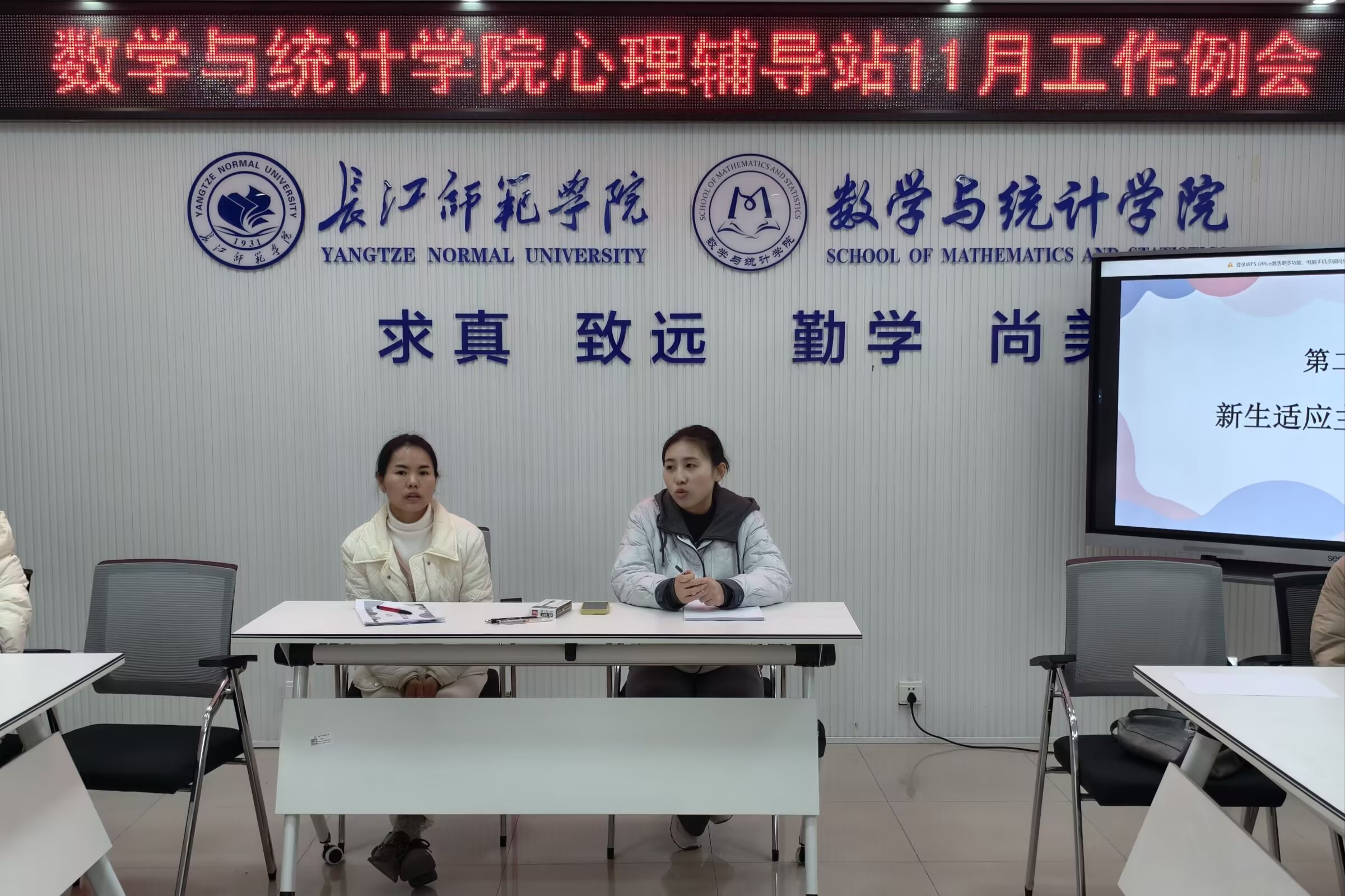 11月12日中午,数学与统计学院在钩深楼附楼213会议室开展心理辅导站11月工作例会。我院2025级辅导员任琼和2023级辅导员刘磊担任主讲人,各年级心理委员及心理发展部全体成员参加。