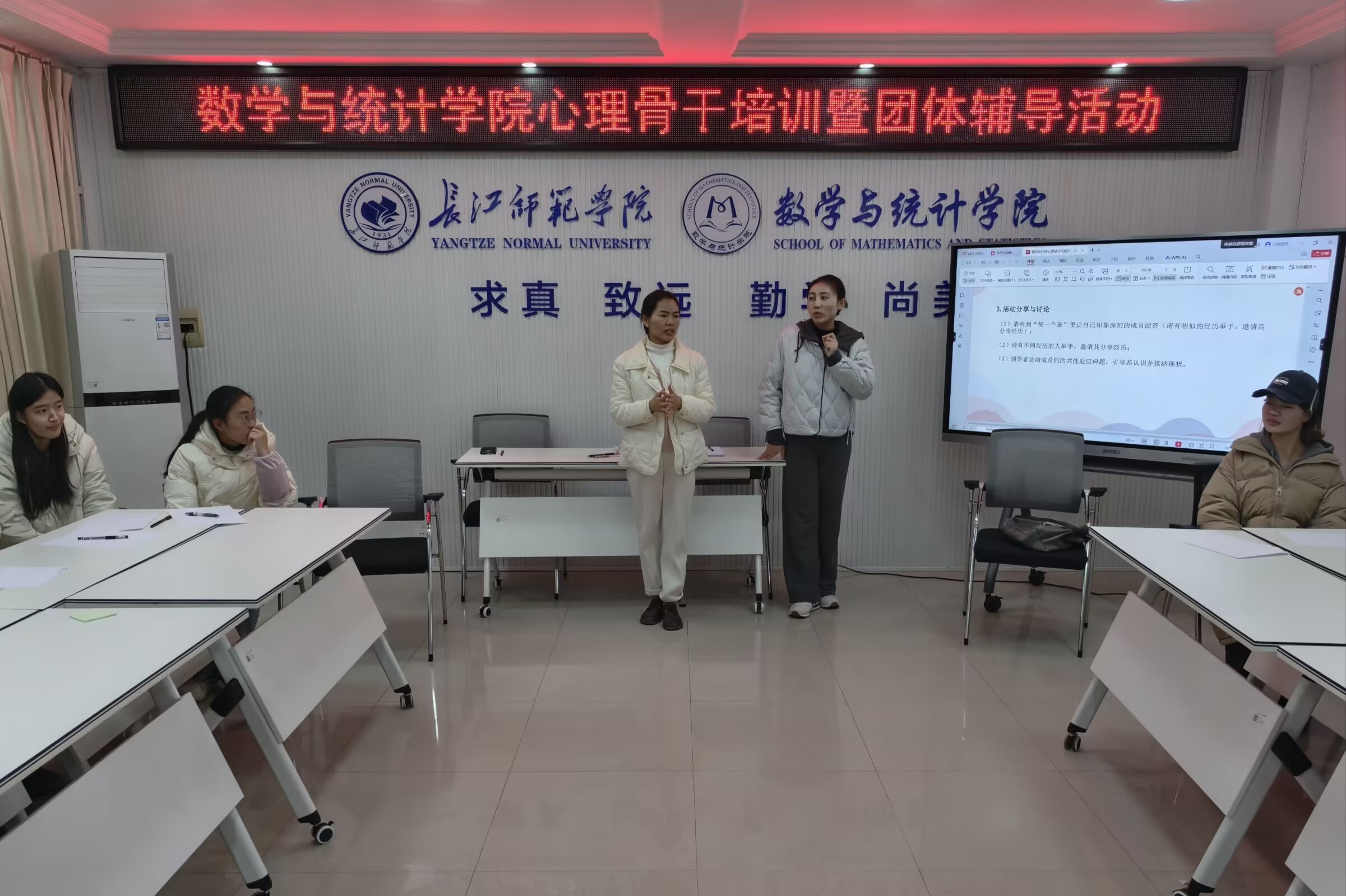 12月12日下午,数学与统计学院在钩深楼附楼213会议室开展心理骨干培训暨团体辅导活动,我院2025级辅导员任琼老师和2023级辅导员刘磊老师担任主讲人,我院各年级心理委员和心理发展部全体成员参加。