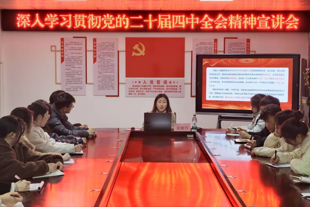 12月11日晚,数学与统计学院在钩深楼附楼216会议室开展深入学习贯彻党的二十届四中全会精神宣讲会,我院党委书记担任主讲人,预备党员及部分入党积极分子参与。