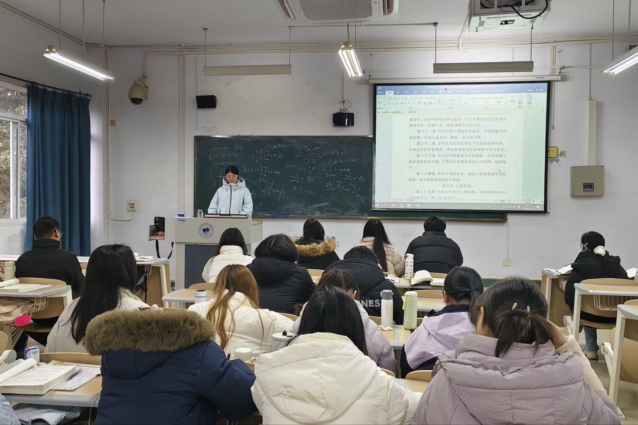 12月14日,数学与统计学院在正心楼206、207、208、209、210组织开展《学生社区管理规定》专题学习活动,我院2023级、2024级、2025级全体学生参加。