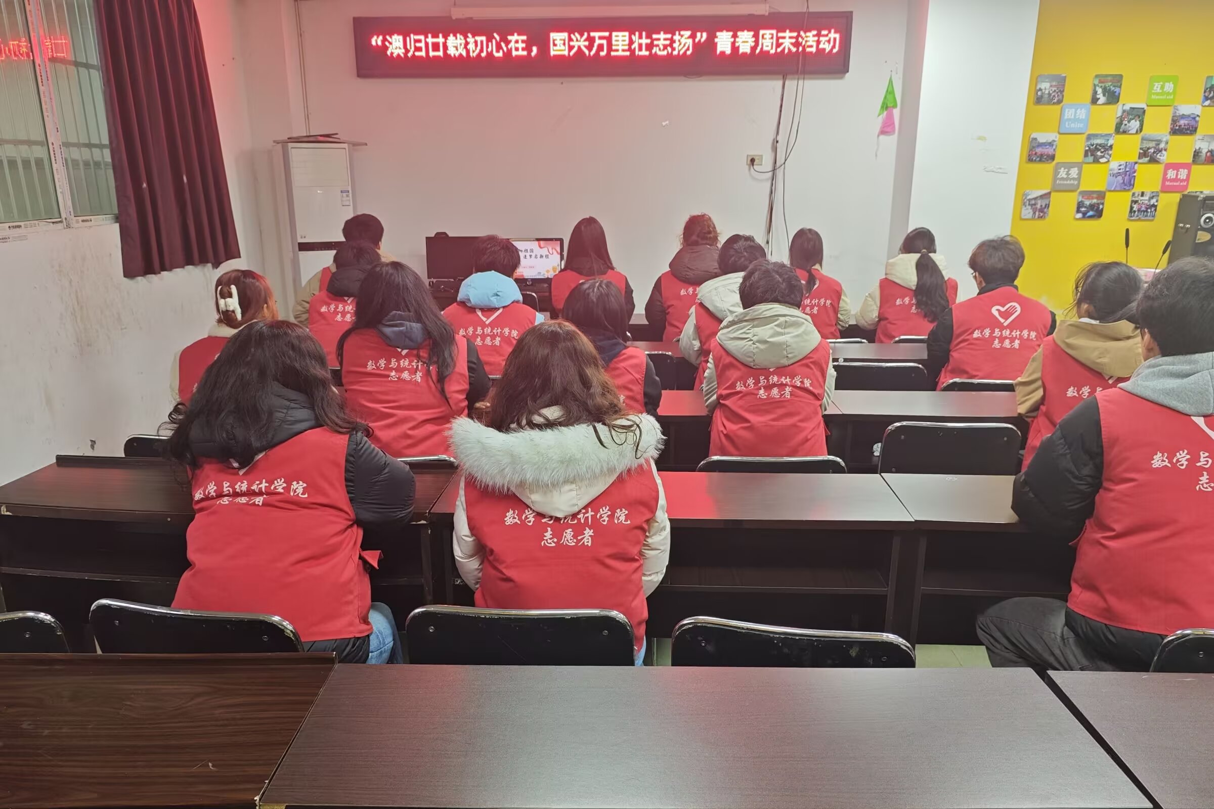 12月20日上午,数学与统计学院“新芽”志愿服务团前往马鞍街道金银社区青少年之家开展“澳归廿载初心在,国兴万里壮志扬”青春周末活动。