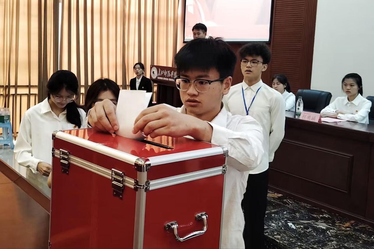 主席团选举环节,秉承公平、公正、公开原则,在总监票员王佳莉及其他监票员监督下,学生代表有序进行无记名投票。总计票员刘林凯及其他计票员计票后,王佳莉同学宣读计票结果,根据大会选举办法和计票结果,任勇涵、王友巧以及蒋妍三位同学当选数学与统计学院2024-2025届学生会主席团成员。