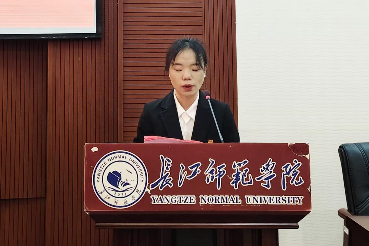 接着,黄园媛同学作《凝心铸魂强根基,踔厉奋发新征程,团结带领全院同学谱写青春华章》第五届学生会工作报告,从“回顾过往,我们脚踏实地,积极进取”、“继往开来,我们锤炼品格,再建新功”、“面对未来,我们勇毅前行,续写华章”三个方面,全面总结第五届学代会以来的工作成果,梳理工作中的亮点与不足,跟随“学高身正,敬业自强”的校训,接受“勤学、尚美、求真、务实”院训的熏陶,激励广大同学牢记使命、踔厉奋发,书写数统学子的青春篇章。