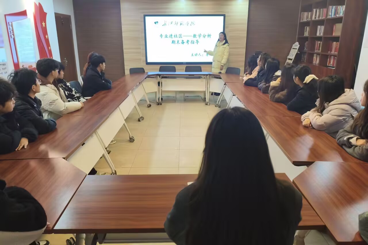 12月15日晚,数学与统计学院在南苑八党员活动室开展第一场“专业进社区——数学分析期末备考指导”活动,我院优秀学子担任担任主讲人,全体学生干部参加。