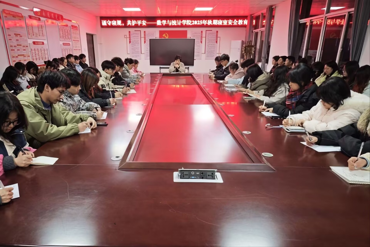 11月27日晚,数学与统计学院在钩深楼附楼216会议室开展谨守寝规,共护平安——数学与统计学院2025年秋期寝室安全教育。我院学工办主任姜丽担任主讲人,全体学生干部参加。