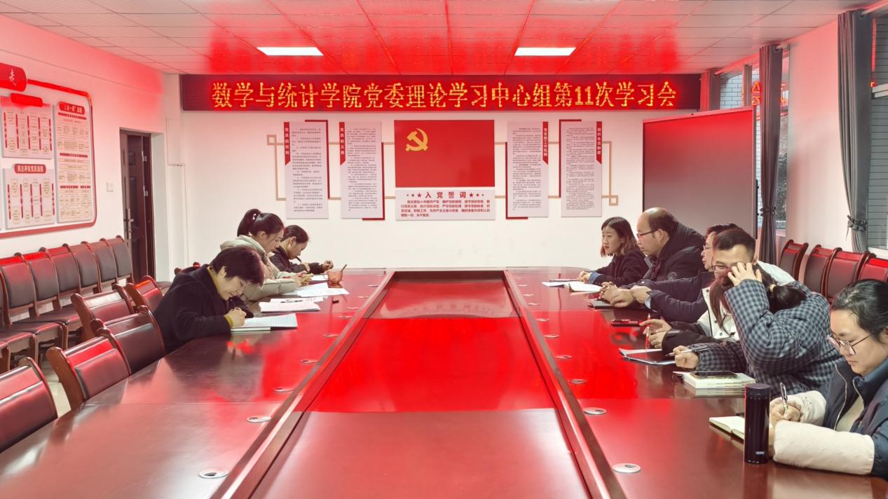 12月19日上午,数学与统计学院党委举行理论学习中心组2025年第11次学习会。学院党委委员、科以上干部和支部书记参加,学院党委书记主持会议。