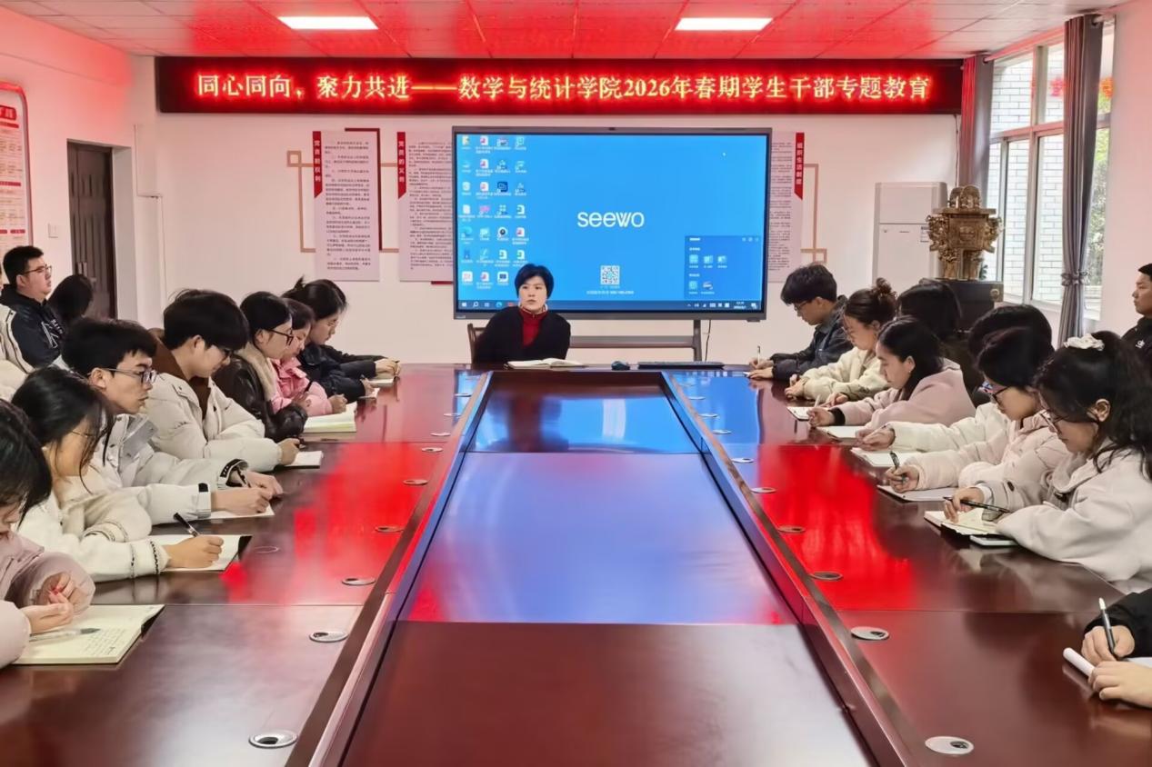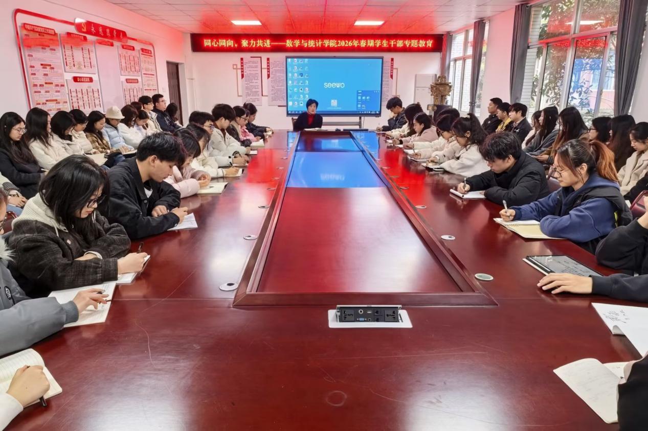 3月1日下午,数学与统计学院在钩深楼附楼216会议室开展“同心同向,聚力共进”2026年春期学生干部专题教育。我院学工办主任姜丽担任主讲人,我院全体学生干部参加。