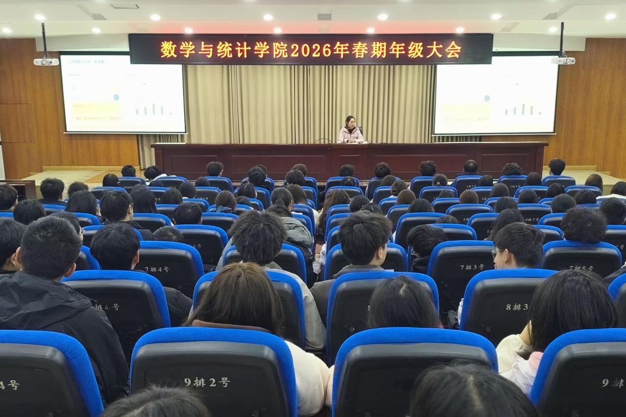 3月1日下午,数学与统计学院于鉴湖学术报告厅开展2025级年级大会,我院2025级辅导员担任主讲人,全体2025级学生参加。